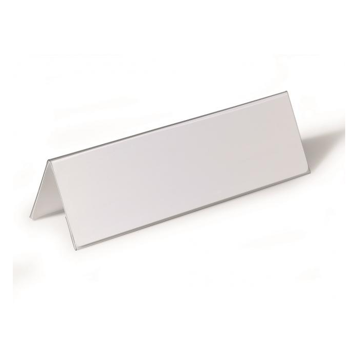 Obojstranne čitateľná stolová menovka z pevného PVC, vhodná na konferencie, recepčné pulty, ceny tovarov a popis produktov. Dodávaná s vymeniteľnou prázdnou kartou. Väčšie balenie 25 ks.