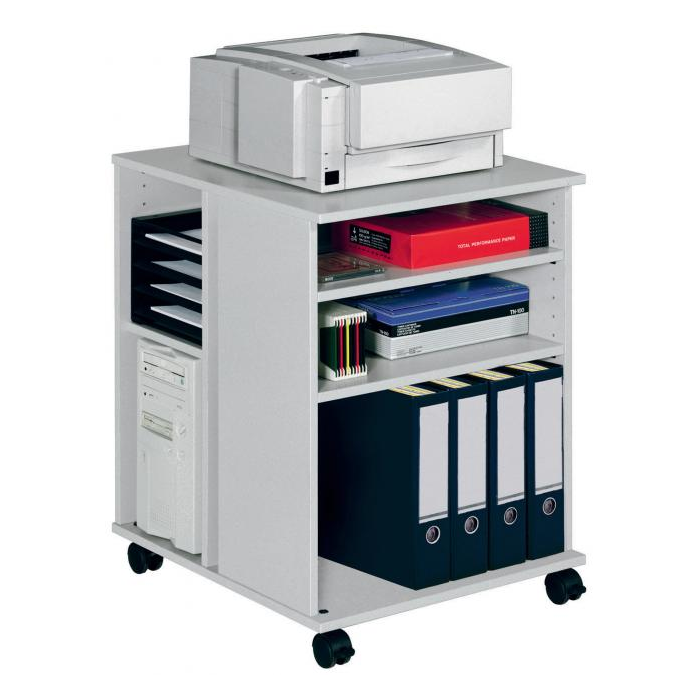 Mobilný vozík otvorený z troch strán so šiestimi policami vhodný pri šetrení s pracovným priestorom. Nosnosť každej police 25 kg. Vyrobený z vysoko kvalitnej laminovanej drevotriesky hrúbky 16 mm odolnej voči poškriabaniu. Farba sivá. Rozmery (š x v x h): 528 x 737 x 592 mm