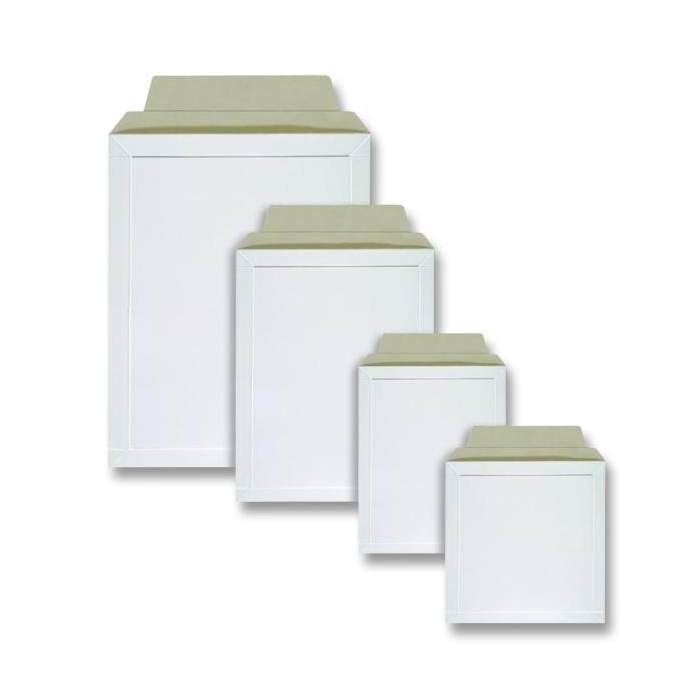 Biele priestorové obálky z tuhého kartónu, zabraňujú poškodeniu zásielky.