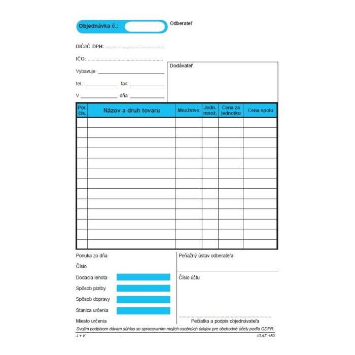 Obchodné tlačivo. Objednávka, samoprepis s kartónovou obálkou - podložkou, A5, blok, 100 listov.