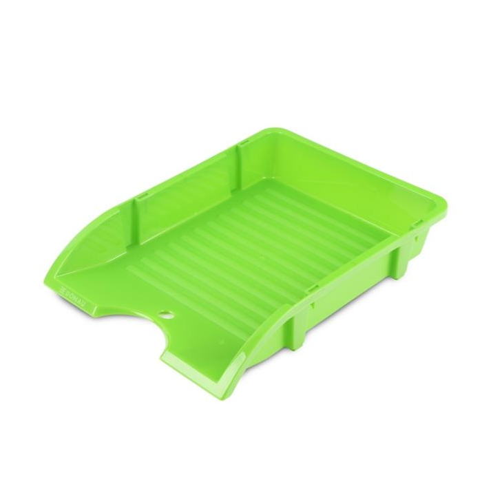 odkladač na stôl s novým originálnym štýlom vyrobené z nerozbitného a deformačne odolného polypropylénu rebrovaný povrch na dne odkladača možnosť vertikálneho spojenia odkladačov a ich umiestnenia na seba pre zníženie objemu počas prepravy otvor v základni a výrezy po stranách pre jednoduché použitie formát: A4 rozmery: 250x345x45mm farba: svetlozelená
