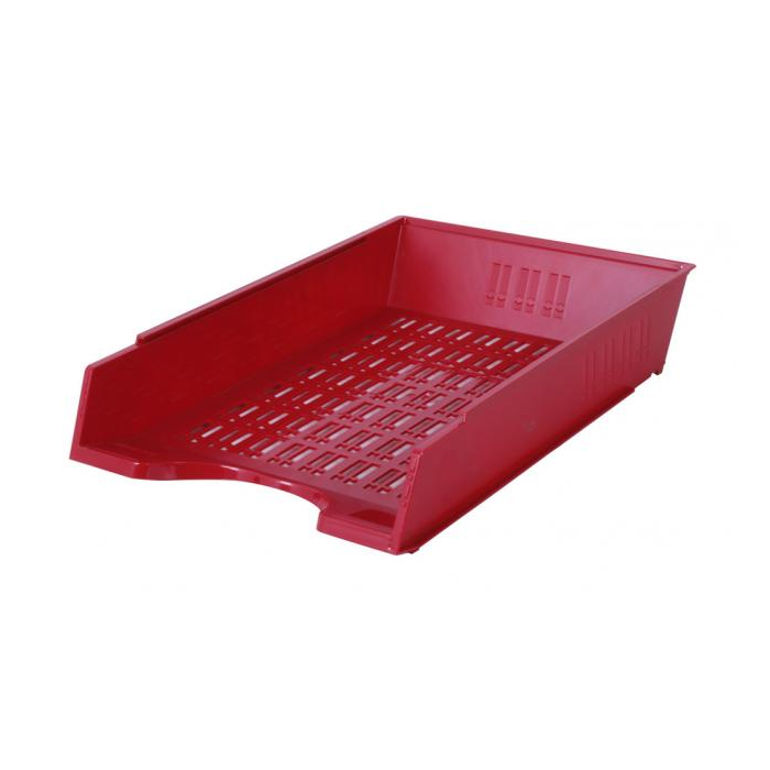 Plastový odkladač na papiere formátu A4 s možnosťou stohovania dozadu. Úprava priehľadná. Väčšie balenie 10 ks.
