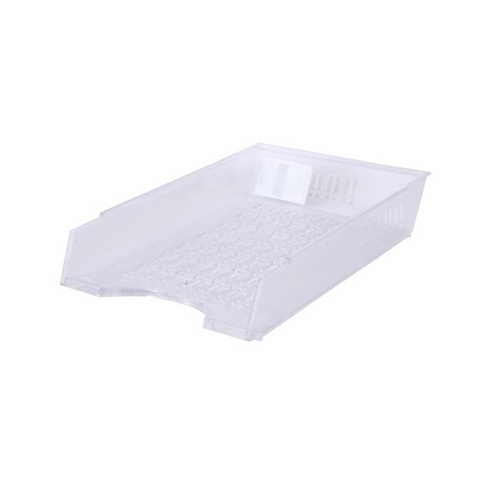 Plastový odkladač na papiere formátu A4 s možnosťou stohovania dozadu. Úprava priehľadná. Väčšie balenie 10 ks.
