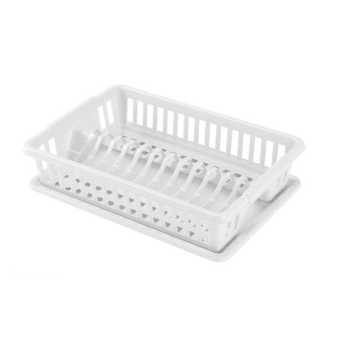Plastový odkvapkávač na riad, ponúka priestor na odkvapkanie 10 tanierov. Kompaktný design, jednoduché skladovanie.