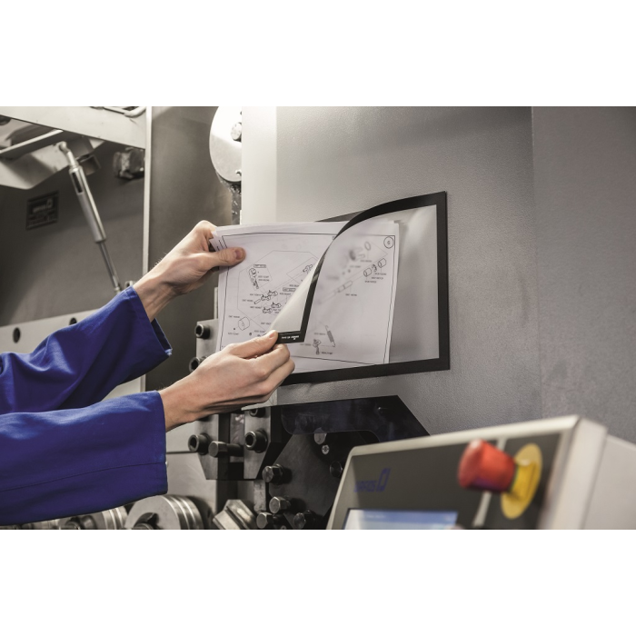 Panel s plne magnetickou zadnou časťou na posilnené držanie na kovových povrchoch. Jednoduché a rýchle vkladanie informácie formátu A4.