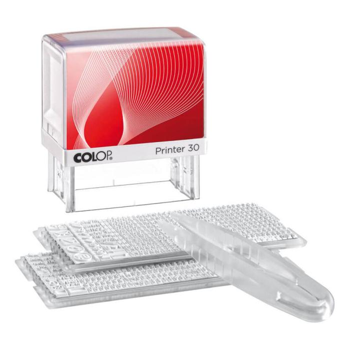 Súprava Printer 30/ 2 Set pre maximálne 5 riadkov textu je dodávaná vrátane pečiatkovej podušky, typovej sady 3,5 mm a 2,5 mm a pinzety. Náhradná poduška E/30 čierna. Veľkosť odtlačku: 47 x 18 mm.