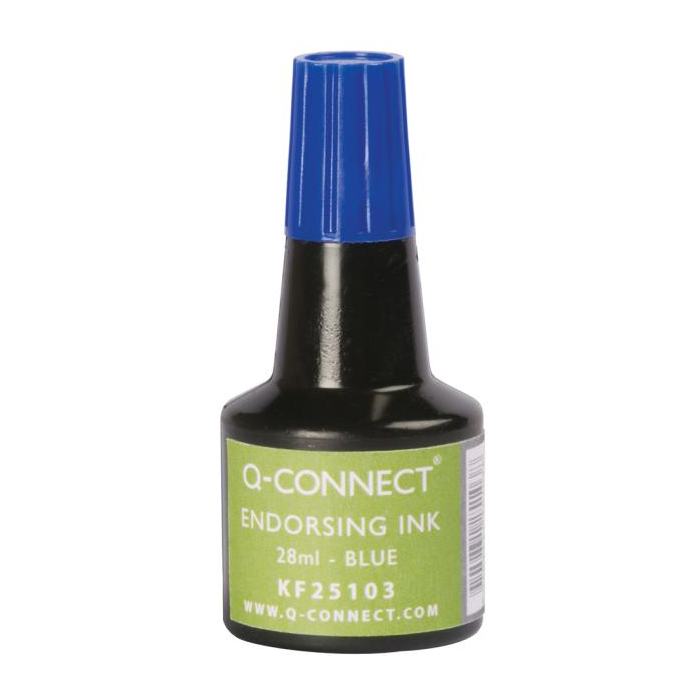 Q-Connect univerzálna pečiatková farba bezolejová, vhodná na gumené a samofarbiace pečiatky. Objem 28 mℓ. Väčšie balenie 10 ks. Farba modrá.