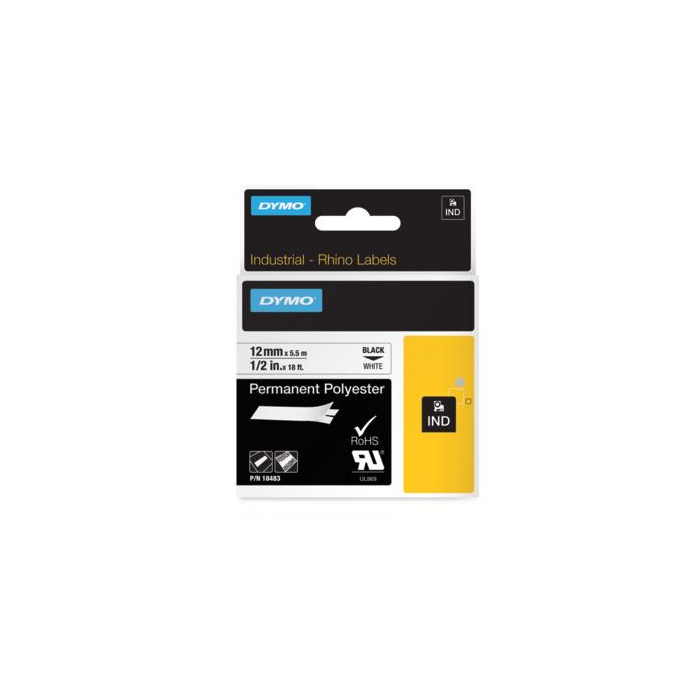 Pásky s rovnakým vzhľadom ako samolepiace pásky D1, ponúkajúce kvalitné permanentné lepidlo pre prípady, keď sa vyžaduje neobmedzená trvanlivosť prilepeného štítku. Sú určené do etiketovacích zariadení DYMO radu Rhino a LM s aplikáciou v uzavretých i otvorených priestoroch. Poskytujú široký výber použitia na povrchoch rovných, hladkých, s textúrou alebo s výraznou textúrou. Sú odolné voči rozdielom teplôt, vode, ultrafialovému žiareniu, olejom, rozpúšťadlám a chemickým látkam. Dĺžka pásky 5,5 m. Farba pásky biela, písmo čierme. Šírka pásky 12 mm.