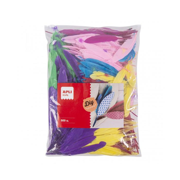 Indiánske pierka v rôznych farbách: zelená, svetlomodrá, tmavomodrá, žltá, oranžová a červená. Rôzne veľkosti od 9-10 cm a 13-14 cm. Každé vrecko obsahuje približne 500 pierok. MAXI formát, ideálne pre školy a skupiny. Základný produkt pre školy a detské dielne, ideálny na kostýmy, zdobenie alebo použitie v iných ručných prácach. Ideálne na stimuláciu detskej fantázie a kreativity.