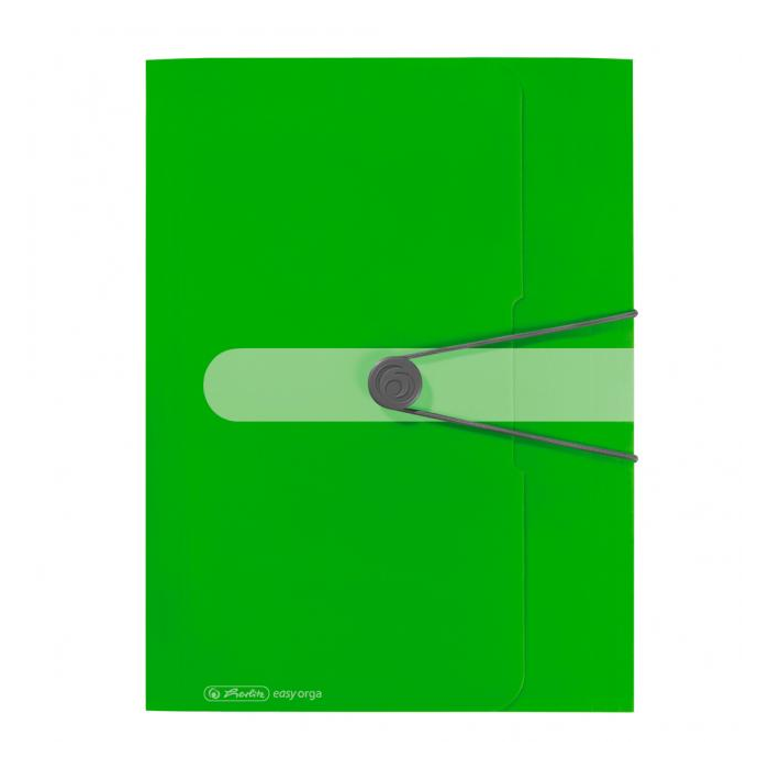 Obal s tromi chlopňami radu Easy Orga z polypropylénu na dokumenty formátu A4. Kapacita 300 listov. Zatváranie sivou gumičkou o sivý plastový krúžok. Väčšie balenie 3 ks. Farba zelená.
