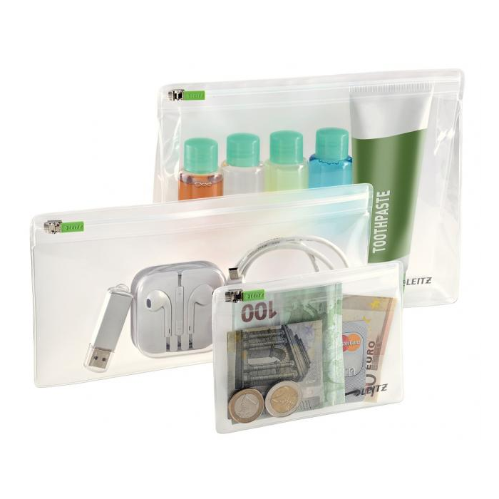 Viacúčelové cestovné obaly Leitz znamenajú poriadok, efektívnu organizáciu a prehľadnosť - vaša príručná batožina bude zabalená za niekoľko minút! Jednoduchý a ľahký systém organizácie, vďaka vysoko kvalitnej čírej fólii ihneď vidíte obsah obalu. Rôzne veľkosti pre rôzne použitie. Materiál PVC. Balenie 3 ks. Veľkosti XS, S, a M.