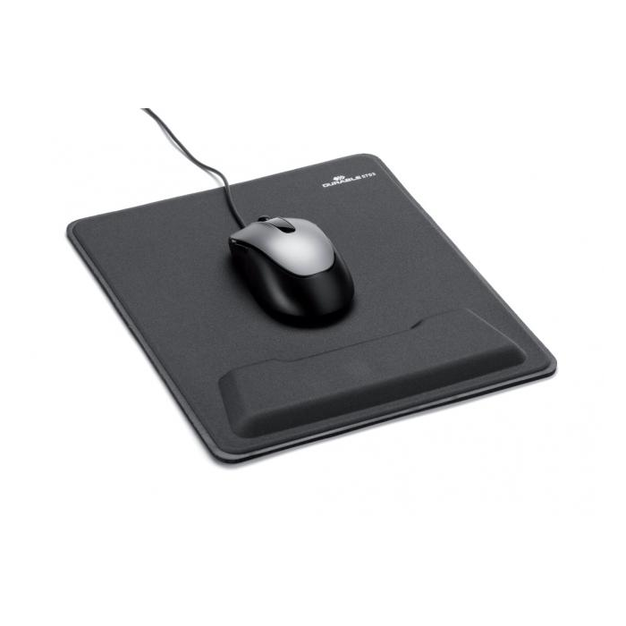 Ergonomická podložka pod myš s textilným povrchom a zabudovanou podperou zápästia z trvácneho penového materiálu. Rozmery 257 × 310 × 8,5 mm. Farba antracitová.