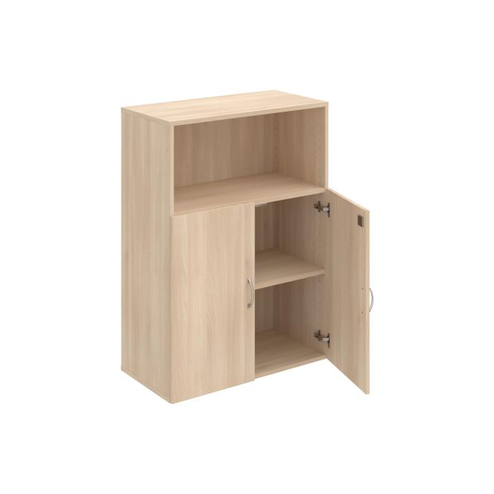 Kombinovaná skriňa - dvere/nika.Dôraz na funkčnosť a cenu. Kvalita a variabilita s nízkymi obstarávacími nákladmi. Materiály výrobcov z Európskej únie.Obojstranne pohľadový chrbát. Zabezpečenie políc proti náhodnému vysunutiu. 45 rôznych prvkov pre Vaše potreby a požiadavky. V našej ponuke nájdete skriňové moduly výšky 185 cm, 111 cm alebo 74 cm a šírky 80 cm alebo 40 cm. Hĺbka všetkých modelov skríň radu Drive je 40 cm (42 cm s dverami). Chrbát, vyrobený z 3 mm hrubých dosiek HDF, je obojstranne pohľadový, takže skrine môžete použiť ako priestorový deliaci prvok. Vďaka polohovateľným policiam (hrúbky 18 mm) je možné priestor prispôsobiť Vašim predstavám. Základná výška úložného priestoru je prispôsobená výške štandardného šanónu. Dvere sú chránené 2mm hranou ABS a osadené kvalitným kovaním s doživotnou zárukou. Okrem plných a presklených dverí Vám ponúkame aj skrine s roletovým systémom.Pokiaľ sa rozhodnete pre umiestnenie skríň na podlahu, nezabudnite si doobjednať rektifikačné nohy, ktoré nie sú štandardnou súčasťou objednávky. Aby sa zásielka dostala v poriadku až do Vašej kancelárie, dodávame skrine demontované v niekoľkých samostatných a bezpečne zabalených balíkoch. Súčasťou každého balenia je tiež prehľadný návod. Na skrive Drive dostanete záruku 5 rokov.