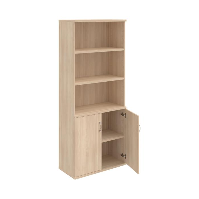 Kancelárske skrine STRONG majú robustnú konštrukciu a vyššiu nosnosť políc ako bežné kancelárske skrine.V ponuke sú skriňové moduly s výškou 185 cm, 111 cm alebo 74 cm a šírky 80 cm alebo 40 cm.Hĺbka všetkých modelov skriňového radu STRONG je 40 cm.Chrbát, vyrobený z 8 mm hrubých dosák, je obojstranne pohľadový, takže skrine môžete použiť ako priestorový deliaci prvok. Hrúbka samotných políc je 25 mm, čo znamená nosnosť 80 kg na 1 policu.Korpusy, dvierka a police skríň sú olepené odolnou 2mm ABS hranou, ktorá garantuje dostatočnú ochranu proti poškodeniu.