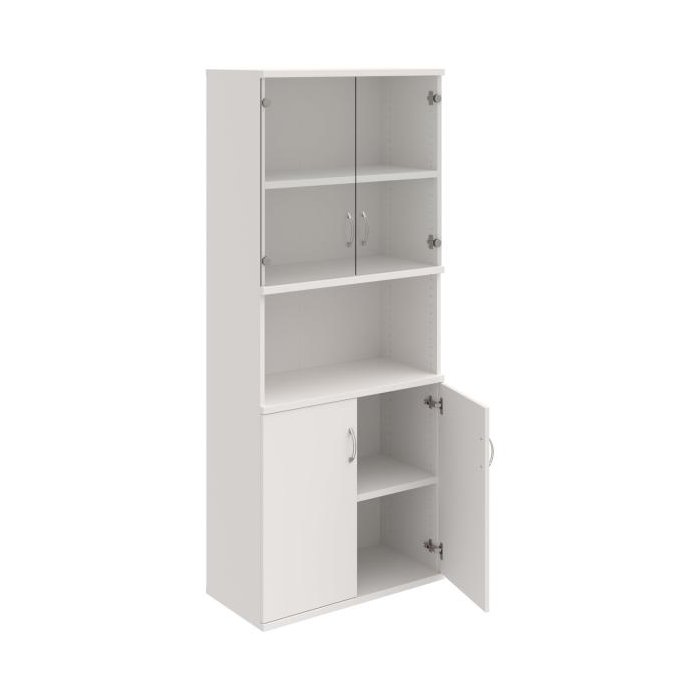 Kombinovaná skriňa - dvere/nika. Kancelárske skrine STRONG majú robustnú konštrukciu a vyššiu nosnosť políc ako bežné kancelárske skrine.V ponuke sú skriňové moduly s výškou 185 cm, 111 cm alebo 74 cm a šírky 80 cm alebo 40 cm. Hĺbka všetkých modelov skriňového radu STRONG je 40 cm.Chrbát, vyrobený z 8 mm hrubých dosák, je obojstranne pohľadový, takže skrine môžete použiť ako priestorový deliaci prvok. Hrúbka samotných políc je 25 mm, čo znamená nosnosť 80 kg na 1 policu.Korpusy, dvierka a police skríň sú olepené odolnou 2mm ABS hranou, ktorá garantuje dostatočnú ochranu proti poškodeniu.