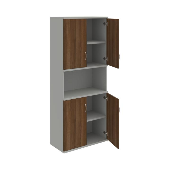 Kombinovaná skriňa - dvere/nika. Kancelárske skrine STRONG majú robustnú konštrukciu a vyššiu nosnosť políc ako bežné kancelárske skrine.V ponuke sú skriňové moduly s výškou 185 cm, 111 cm alebo 74 cm a šírky 80 cm alebo 40 cm.Hĺbka všetkých modelov skriňového radu STRONG je 40 cm.Chrbát, vyrobený z 8 mm hrubých dosák, je obojstranne pohľadový, takže skrine môžete použiť ako priestorový deliaci prvok. Hrúbka samotných políc je 25 mm, čo znamená nosnosť 80 kg na 1 policu.Korpusy, dvierka a police skríň sú olepené odolnou 2mm ABS hranou, ktorá garantuje dostatočnú ochranu proti poškodeniu.