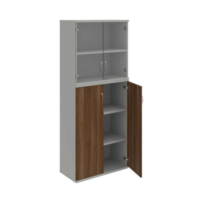 Kombinovaná skriňa - dvere/nika. Kancelárske skrine STRONG majú robustnú konštrukciu a vyššiu nosnosť políc ako bežné kancelárske skrine.V ponuke sú skriňové moduly s výškou 185 cm, 111 cm alebo 74 cm a šírky 80 cm alebo 40 cm. Hĺbka všetkých modelov skriňového radu STRONG je 40 cm.Chrbát, vyrobený z 8 mm hrubých dosák, je obojstranne pohľadový, takže skrine môžete použiť ako priestorový deliaci prvok. Hrúbka samotných políc je 25 mm, čo znamená nosnosť 80 kg na 1 policu.Korpusy, dvierka a police skríň sú olepené odolnou 2mm ABS hranou, ktorá garantuje dostatočnú ochranu proti poškodeniu.