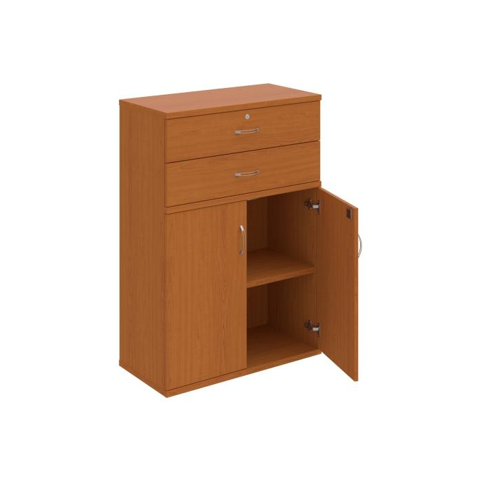 Kancelárske skrine STRONG majú robustnú konštrukciu a vyššiu nosnosť políc ako bežné kancelárske skrine.V ponuke sú skriňové moduly s výškou 185 cm, 111 cm alebo 74 cm a šírky 80 cm alebo 40 cm. Hĺbka všetkých modelov skriňového radu STRONG je 40 cm.Chrbát, vyrobený z 8 mm hrubých dosák, je obojstranne pohľadový, takže skrine môžete použiť ako priestorový deliaci prvok. Hrúbka samotných políc je 25 mm, čo znamená nosnosť 80 kg na 1 policu.Korpusy, dvierka a police skríň sú olepené odolnou 2mm ABS hranou, ktorá garantuje dostatočnú ochranu proti poškodeniu.