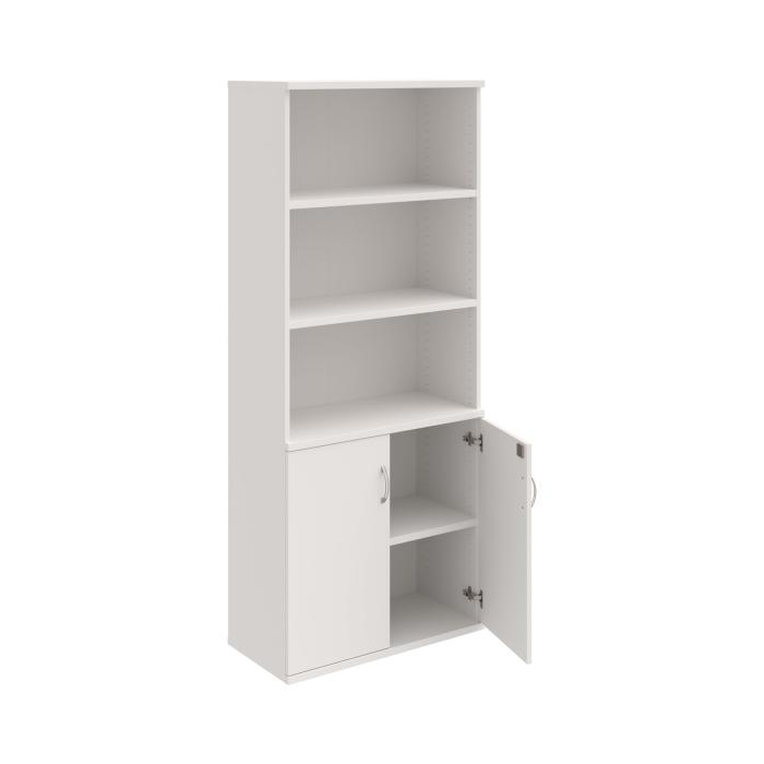 Kancelárske skrine STRONG majú robustnú konštrukciu a vyššiu nosnosť políc ako bežné kancelárske skrine.V ponuke sú skriňové moduly s výškou 185 cm, 111 cm alebo 74 cm a šírky 80 cm alebo 40 cm.Hĺbka všetkých modelov skriňového radu STRONG je 40 cm.Chrbát, vyrobený z 8 mm hrubých dosák, je obojstranne pohľadový, takže skrine môžete použiť ako priestorový deliaci prvok. Hrúbka samotných políc je 25 mm, čo znamená nosnosť 80 kg na 1 policu.Korpusy, dvierka a police skríň sú olepené odolnou 2mm ABS hranou, ktorá garantuje dostatočnú ochranu proti poškodeniu.