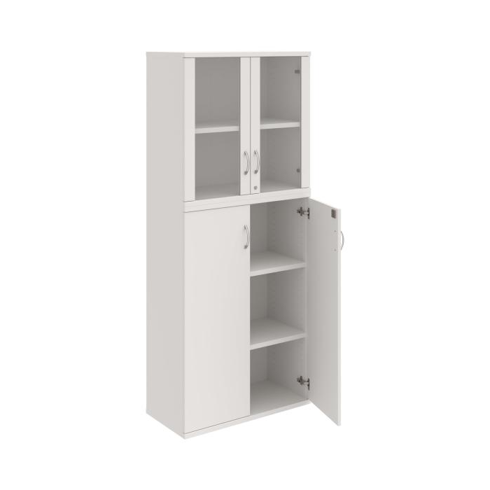 Kombinovaná skriňa - dvere/nika. Kancelárske skrine STRONG majú robustnú konštrukciu a vyššiu nosnosť políc ako bežné kancelárske skrine.V ponuke sú skriňové moduly s výškou 185 cm, 111 cm alebo 74 cm a šírky 80 cm alebo 40 cm. Hĺbka všetkých modelov skriňového radu STRONG je 40 cm.Chrbát, vyrobený z 8 mm hrubých dosák, je obojstranne pohľadový, takže skrine môžete použiť ako priestorový deliaci prvok. Hrúbka samotných políc je 25 mm, čo znamená nosnosť 80 kg na 1 policu.Korpusy, dvierka a police skríň sú olepené odolnou 2mm ABS hranou, ktorá garantuje dostatočnú ochranu proti poškodeniu.