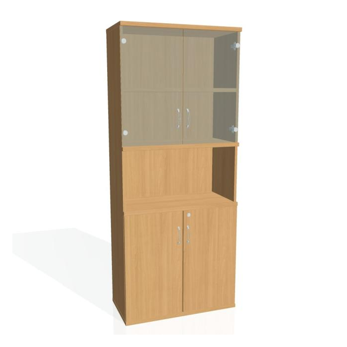 Kombinovaná skriňa - dvere/nika. Kancelárske skrine STRONG majú robustnú konštrukciu a vyššiu nosnosť políc ako bežné kancelárske skrine.V ponuke sú skriňové moduly s výškou 185 cm, 111 cm alebo 74 cm a šírky 80 cm alebo 40 cm. Hĺbka všetkých modelov skriňového radu STRONG je 40 cm.Chrbát, vyrobený z 8 mm hrubých dosák, je obojstranne pohľadový, takže skrine môžete použiť ako priestorový deliaci prvok. Hrúbka samotných políc je 25 mm, čo znamená nosnosť 80 kg na 1 policu.Korpusy, dvierka a police skríň sú olepené odolnou 2mm ABS hranou, ktorá garantuje dostatočnú ochranu proti poškodeniu.