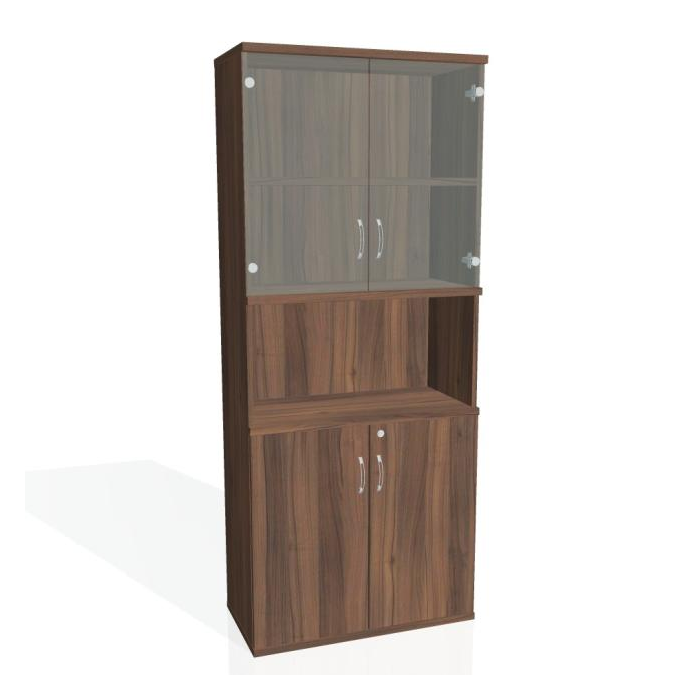 Kombinovaná skriňa - dvere/nika. Kancelárske skrine STRONG majú robustnú konštrukciu a vyššiu nosnosť políc ako bežné kancelárske skrine.V ponuke sú skriňové moduly s výškou 185 cm, 111 cm alebo 74 cm a šírky 80 cm alebo 40 cm. Hĺbka všetkých modelov skriňového radu STRONG je 40 cm.Chrbát, vyrobený z 8 mm hrubých dosák, je obojstranne pohľadový, takže skrine môžete použiť ako priestorový deliaci prvok. Hrúbka samotných políc je 25 mm, čo znamená nosnosť 80 kg na 1 policu.Korpusy, dvierka a police skríň sú olepené odolnou 2mm ABS hranou, ktorá garantuje dostatočnú ochranu proti poškodeniu.