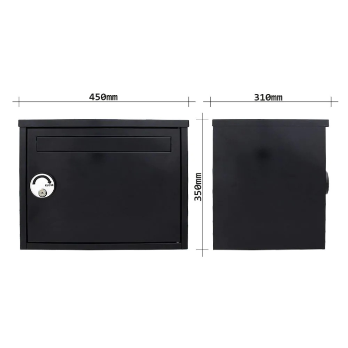 Čierna poštová schránka na balíky ale aj na klasickú poštu a poštové zásielky. Poštu vám poštár vhodí predným vhodom bez nutnosti čokoľvek otvárať. Krytka na prednom vhode zabráni vnikaniu dažďovej vody a nečistôt do vnútra schránky. V prípade balíkov je obrovskou výhodou špeciálny kľúčový zámok. Nechajte zámok otvorený keď je schránka prázdna. Poštár iba otvorí veľké predné dvierka, vloží balík a zamkne špeciálny zámok z vonkajšej strany. Následne pomocou kľúča zámok otvoríte a balík vybehnete. Jednoduché ale účinné a stále bezpečné. Poštovú schránku na balíky upevníte na stenu, fasádu domu alebo múr, či plot pomocou priloženého materiálu na upevnenie.