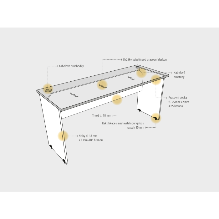 Kancelárske stoly GATE poskytujú nadčasový dizajn a výnimočnú ergonómiu. Využitie nájdu, spolu s ostatným radami kancelárskeho nábytku HOBIS, v akejkoľvek kancelárii. Pracovné dosky kancelárskych stolov rady GATE majú hrúbku 25 mm a sú vybavené 2 mm ABS hranou, ktorá pomáha stoly chrániť pred poškodením. Nohy sú vyrobené z plnej dosky hrúbky 18 mm a vybavené výškovo nastaviteľnou rektifikáciou. Stoly sú tvarované tak, aby ste mohli maximálne využiť plochu stola, pre vedenie káblov od PC sú určené káblové priechodky. Pre zaistenie čo možno najvyššieho komfortu sú v ponuke aj rohové kancelárske stoly s ergonomicky tvarovanými pracovnými doskami. Súčasťou ponuky sú aj rokovacie stoly do zasadačiek. K pracovným stolom ponúkame celkom 106 prvkov, ktoré vďaka jednoduchému spojovaciemu systému môžete rôzne kombinovať. Kancelárske stoly, skrine, kontajnery a doplnky môžete vyberať z ponuky kancelárskeho nábytku HOBIS.Efektivitu dopravy do Vašej kancelárie zaisťujú dodávky jednotlivých dielov stola, ktoré sú bezpečne zabalené. Súčasťou každého balenia je tiež prehľadný návod. Na stoly GATE sa vzťahuje záruka 5 rokov.
