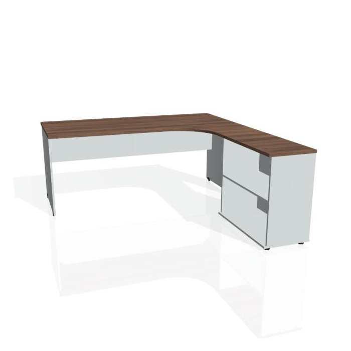 Pracovný stôl Gate, ergo, ľavý, 180x75,5x200 cm, orech/sivá