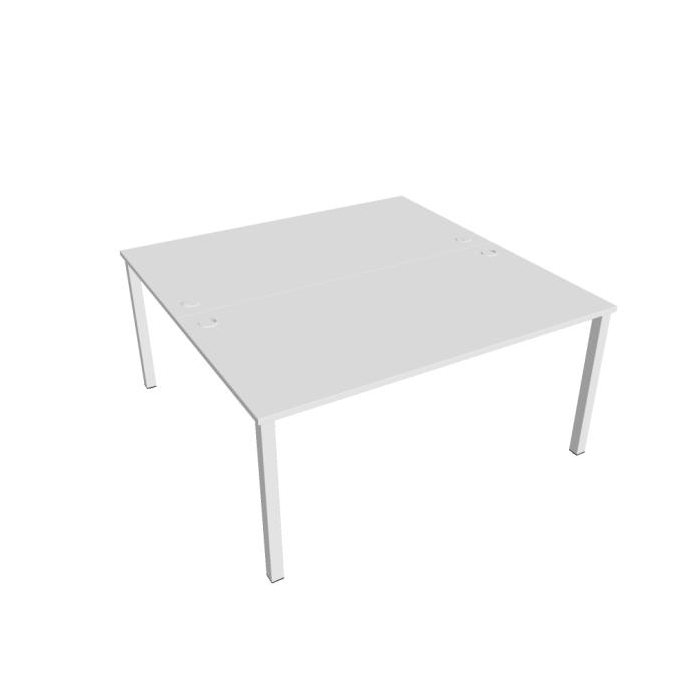 Zdvojený pracovný stôl rovný. Doska stola z kvalitného lamina. Pevná kovová konštrukcia podnožia zo štvorcových profilov 50 x 50 mm je tvorená kompaktnými pármi nôh, ktoré sú spojené priečnikmi. Výškovo nastaviteľná rektifikácia zaisťuje možnosť dorovnania prípadnej nerovnosti podlahy až o 1,5 cm. Stolová pracovná doska z LTD má hrúbku 25 mm a je zakončená 2mm hranou ABS, ktorá ju chráni pred poškodením. Samozrejmosťou sú káblové priechodky a systém pre zavesenie káblov pod stolovou doskou. Možnosť objednania bieleho či sivého prevedenia podnožia. Stolové doplnky, kontajnery a skrine vyberajte z ponuky kancelárskeho nábytku Hobis. Aby sa zásielka dostala v poriadku až do Vašej kancelárie, dodávame stoly demontované v niekoľkých samostatných a bezpečne zabalených škatuliach. Súčasťou každého balenia je tiež prehľadný návod. Na stoly UNI sa vzťahuje záruka 5 rokov. Farebnosť je ilustratívna.