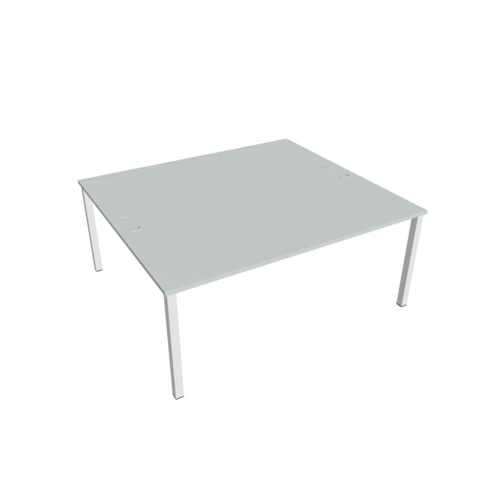 Zdvojený pracovný stôl rovný. Doska stola z kvalitného lamina. Pevná kovová konštrukcia podnožia zo štvorcových profilov 50 x 50 mm je tvorená kompaktnými pármi nôh, ktoré sú spojené priečnikmi. Výškovo nastaviteľná rektifikácia zaisťuje možnosť dorovnania prípadnej nerovnosti podlahy až o 1,5 cm. Stolová pracovná doska z LTD má hrúbku 25 mm a je zakončená 2mm hranou ABS, ktorá ju chráni pred poškodením. Samozrejmosťou sú káblové priechodky a systém pre zavesenie káblov pod stolovou doskou. Možnosť objednania bieleho či sivého prevedenia podnožia. Stolové doplnky, kontajnery a skrine vyberajte z ponuky kancelárskeho nábytku Hobis. Aby sa zásielka dostala v poriadku až do Vašej kancelárie, dodávame stoly demontované v niekoľkých samostatných a bezpečne zabalených škatuliach. Súčasťou každého balenia je tiež prehľadný návod. Na stoly UNI sa vzťahuje záruka 5 rokov. Farebnosť je ilustratívna.
