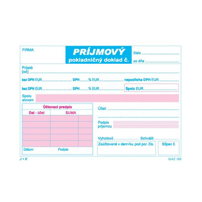 Tlačivo - Príjmový pokladničný doklad A6 dvojfarebný 2xDPH, 100 listov