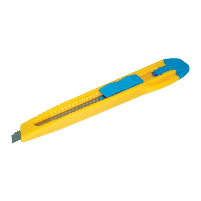 Rezač v plastovej úprave na intenzívne rezacie práce. Šírka čepele 9 mm. Farba žltá/nebeská modrá. Väčšie balenie 12 ks.