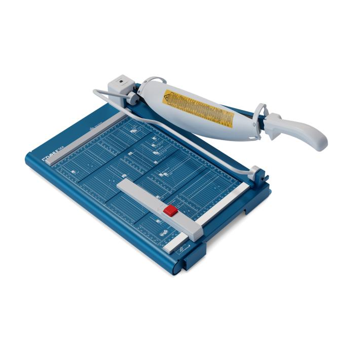 Protišmyková, pohodlná a presná páková rezačka s kovovou základňou na rezanie papiera, kartónu, kože, plastu. Inovovaná technológia s laserovým lúčom, indikujúcim reznú líniu. Brúsený vrchný a spodný nôž z kvalitnej nožiarskej ocele Solingen, rotujúci kryt okolo ostria. Stabilný stôl z masívneho kovu so zaoblenými hranami a protišmykovými gumenými nožičkami pre pevné postavenie. Formátovacie čiary na stole pre lepšie zarovnanie materiálov s praktickou mm stupnicou pozdĺž reznej hrany. Presná mierka v cm/inch a DIN formátoch. Výrez na spodnej časti na pohodlné prenášanie. Presný indikátor laserového lúča pre profesionálne výsledky rezania.
