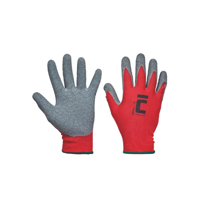 Pletené, bezšvové, nylonové rukavice (15GG • máčené v latexu na dlani a na prstoch • pružná manžeta)