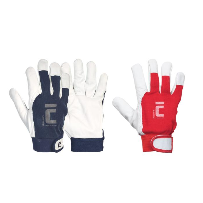 Rukavice pracovné, kombinované PELECANUS, červené/modré veľ. 6/XS