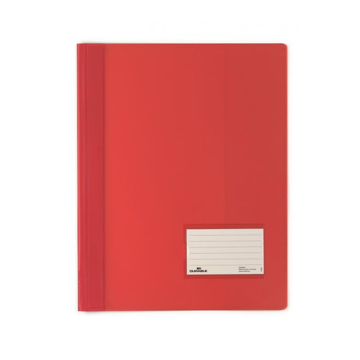 Elegantný rýchloviazač z farebného PVC a plastovým zakladacím viazačom. Priehľadné vrecko vo formáte vizitky (90 x 57 mm) na prednom obale a vnútorné vrecko na zadnej strane. Extra široký, vhodný aj na euroobaly. Väčšie balenie 25 ks. V kombinácii so zakladacím pásikom obj. kód DU2996 02 je možné archivovať rýchloviazač v zakladači.