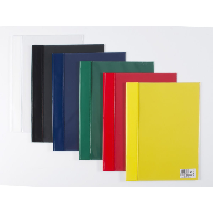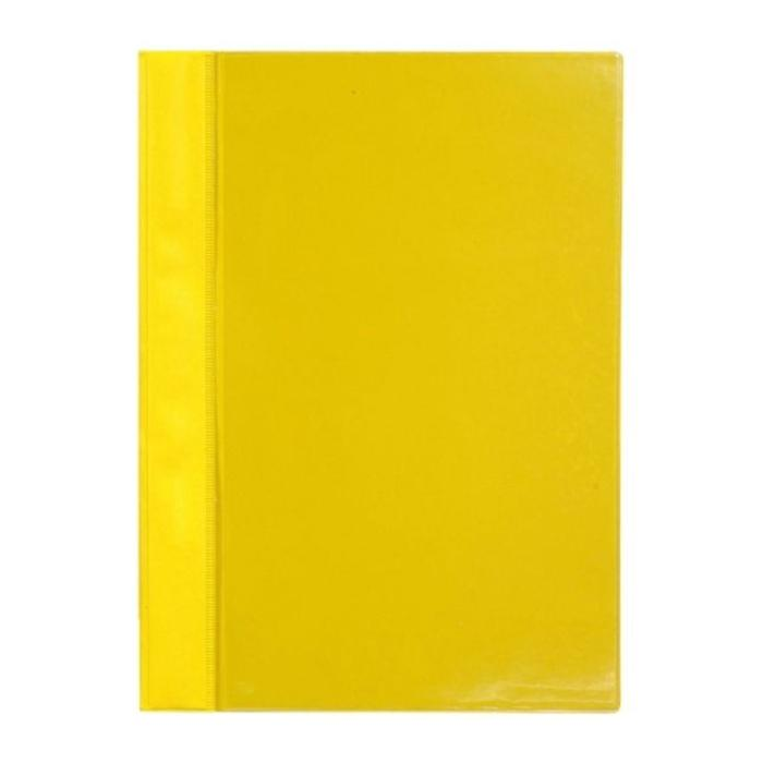 Rýchloviazač s prednou stranou priehľadnou a zadnou stranou žltej farby z pevného PVC. Vrecko na prednej časti.