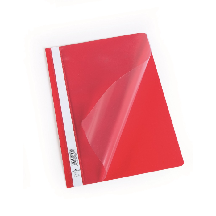Štandardný polypropylénový rýchloviazač s priehľadnou prednou stranou a nasúvacím popisným pásikom. Formát A4. Balenie 50 ks v jednej farbe. V kombinácii so zakladacím pásikom obj. kód DU2996 02 je možné archivovať rýchloviazač v zakladači. Farba: červená