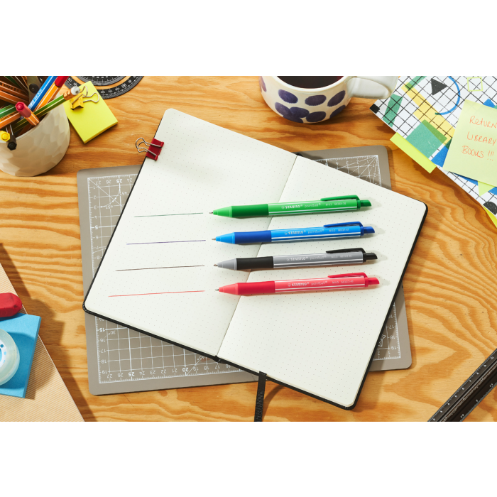 Vďaka svojmu farebnému dizajnu je STABILO pointball colorful sviežim a moderným doplnkom každého stola. Farebne odlíšené telo guľôčkového pera zobrazuje farbu atramentu - už žiadne hádanie, akou farbou píše. Je to skvelý nástroj na rýchle písanie, pretože kvalitný atrament v guľôčkovom pere zaisťuje hladký a rovnomerný tok so šírkou čiary 0,5 mm. Mäkká zóna úchopu poskytuje pohodlné uchopenie aj pri dlhšom písaní. Okrem toho má výrobok certifikát ISCC PLUS, pretože 87 % plastov na biologickej báze použitých na výrobu tela pera pochádza z udržateľných zdrojov (hmotnostná bilancia). Vďaka guľôčkovej náplni STABILO je možné farebnú guľôčku STABILO ľahko dopĺňať znova a znova.