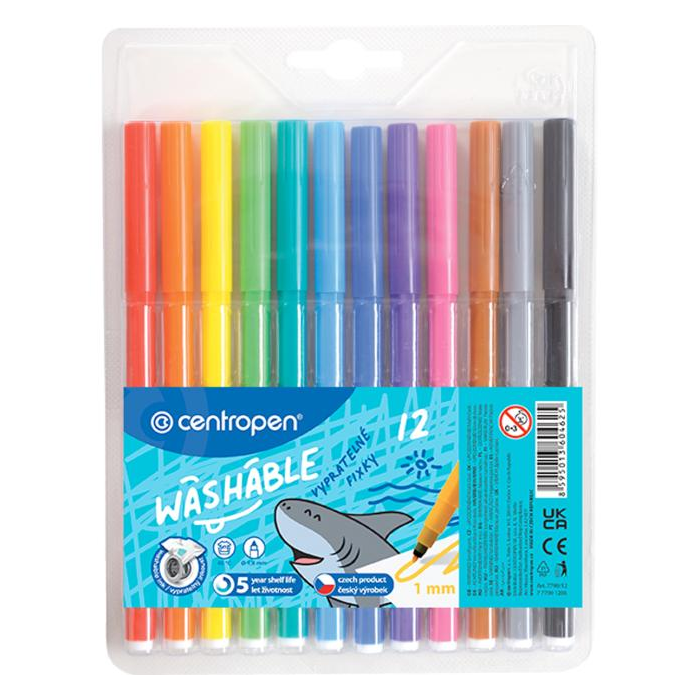 Popisovač vyrobený z PP s ventilačným bezpečnostným uzáverom a vláknovým hrotom odolným voči zatlačeniu. Šírka stopy 1,8 mm. Dodávaný v sade 12 farieb. Farba: sada 12 ks Typ hrotu: vláknový Šírka stopy: 1,8 mm