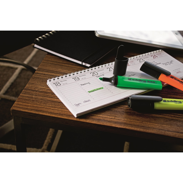 Popisovač so zrezaným hrotom so šírkou stopy 2 - 5 mm. Pre zvýraznenie textových pasáží, výstupov z atramentových tlačiarní, poznámok a pod. Vodovzdorný pigmentový atrament so silne svietivými a intenzívnymi farbami. Vhodný pre InkJet - pri zvýrazňovaní textov tlačených na atramentových tlačiarňach sa atrament nerozpíja. Dopĺňateľný atramentom HTK 25. Sada 4 farieb. Farba: 4 farby Šírka stopy: 2-5 mm