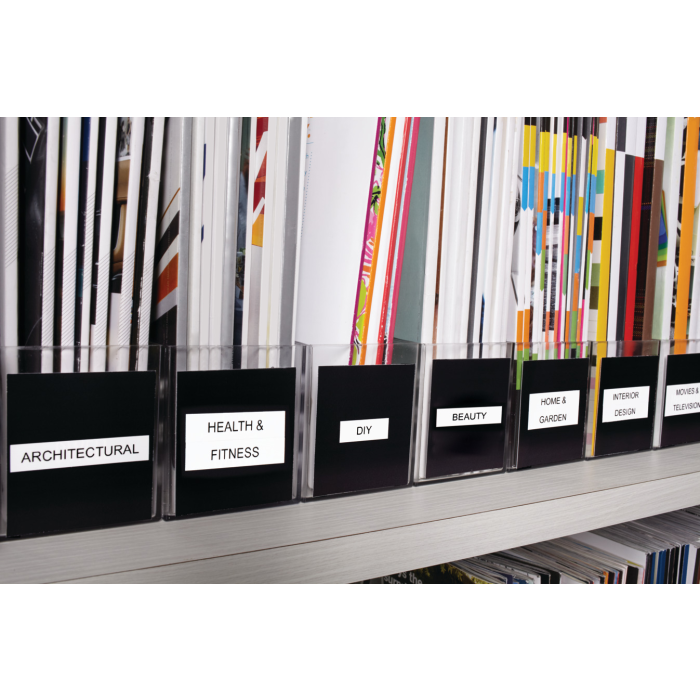 Permanentné pásky odolné voči vode, olejom, organickým zlúčeninám. Podkladová páska, text a lepidlo odolávajú teplotám -30 °C až do +150 °C. Majú dobrú priľnavosť na ABS, PVC, PE, Acrylic, sklo, drevo, papier a nerezovú oceľ. Sú určené pre Dymo zariadenia. Dĺžka 7 m.