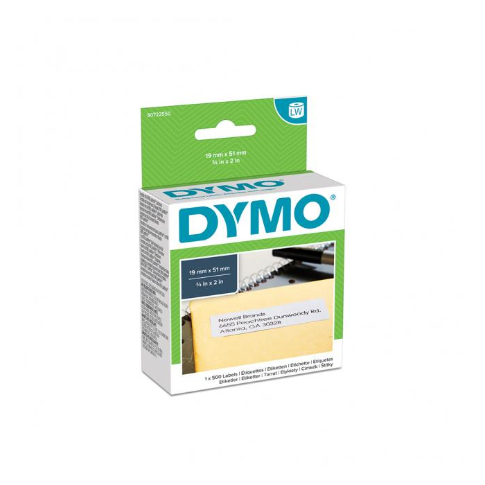 Etikety do tlačiarní Dymo LabelWriter 450 a Labelwriter 450 Duo sú navinuté v rolke. Materiál papier.Farba etikiet biela. Farba: biela Rozmery: 51x19 mm Balenie: 1x500 ks