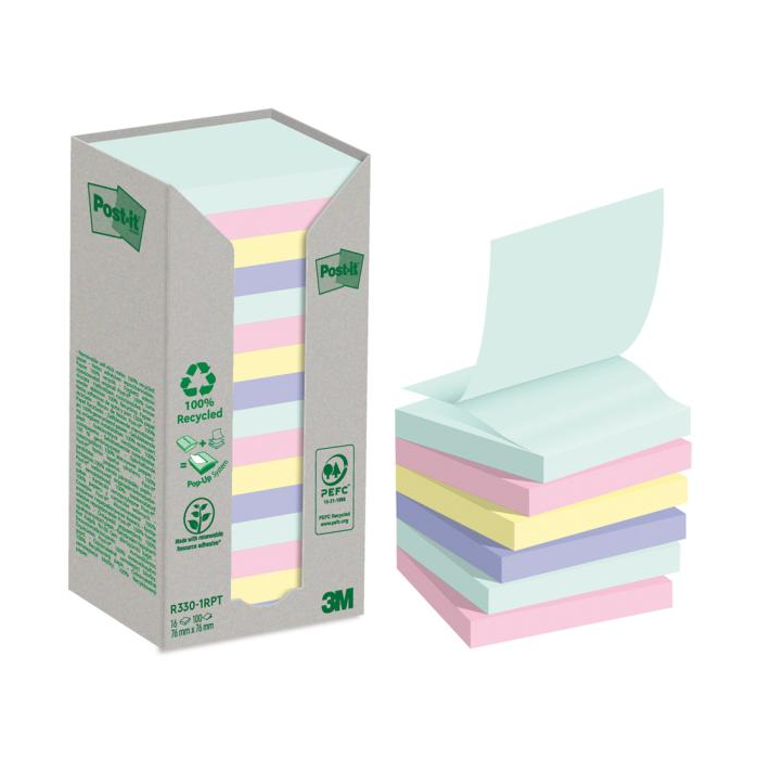 Samolepiace Z-Bločky Post-it recyklované, NATURE, 76x76 mm, dúhové, 16x100 lístkov