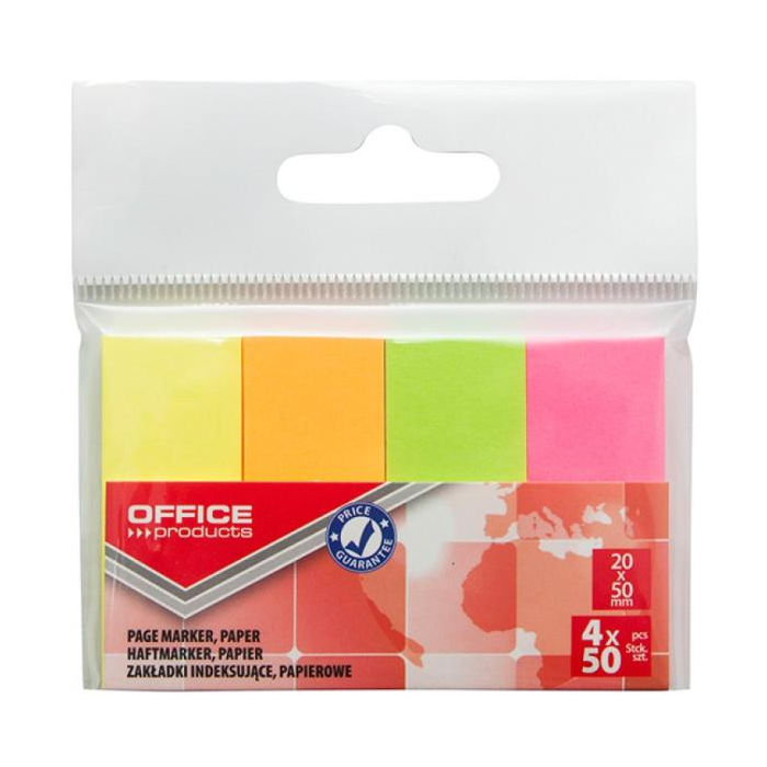 Samolepiace záložky Office Products 20x50mm neon 4x50 lístkov