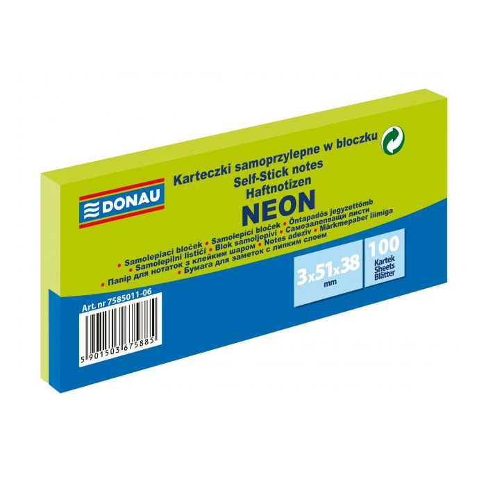 Samolepiaci bloček Donau neónový 38x51 zelený/3ks
