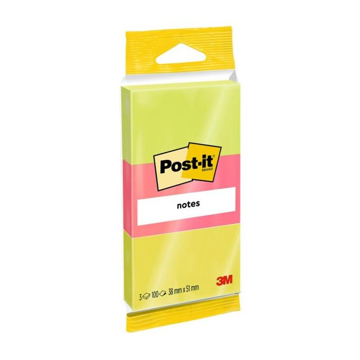 Samolepiaci bloček Post-it bločky, 51 x 38 mm, zelená, ružová, žltá, 3 bločky po 100 lístkov