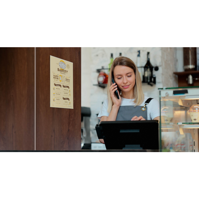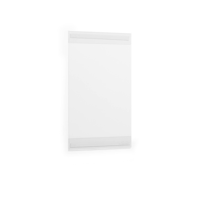Na použitie vo formáte na výšku na hladkých aj nerovných povrchoch (čistých a stabilných) Trvalo samolepiace vďaka dvom lepiacim pásikom na zadnej strane Jednoduchá výmena dokumentov zasunutím z boku Fólia vyrobená z 80 % materiálu rPET (recyklácia po spotrebiteľovi) Lepiace pásiky možno z produktu odstrániť bez zanechania akýchkoľvek zvyškov, čo umožňuje likvidáciu materiálov oddelene a recykláciu
