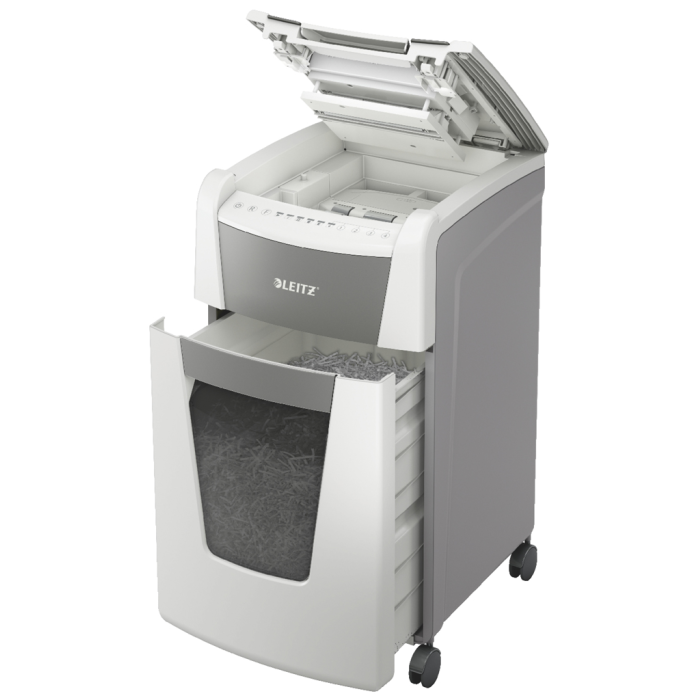 Jedinečná čistá vyprázdňovacia funkcia (rezací mechanizmus obráti chod po každom použití) na zabránenie zapadnutia skartovaného papiera za kôš pri jeho vysúvaní.